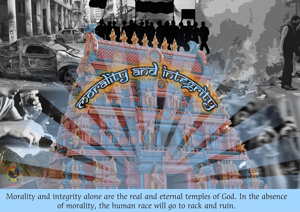 • “Right conduct is the royal road for man to achieve the highest state in life. When morality declines in a man, society, or nation, that man, society or nation faces destruction. The loss of morality may even result in the destruction of an entire civilization built up over centuries. Without morality, people perish. Morality is the life-breath of humanity. It is because of the decline of morals that humanity today is decadent.”