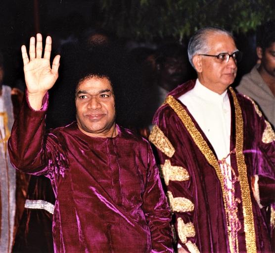 Vice Chancellor Dr. Somnath Saraf with Sri Sathya Sai on SSSIHL Convocation Day – November 22, 1987